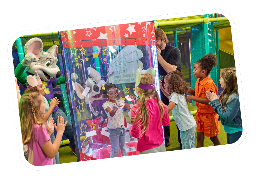 A live show in English, Spanish, or ASL. Chuck E. makes your Birthday Star the center of the adventure.