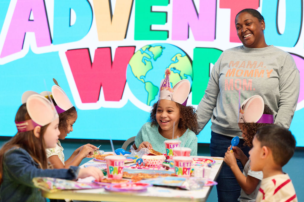 Every party comes with reserved tables for up to three hours, giving you time to enjoy food, fun, and celebrate together. It’s the perfect home base while kids explore Adventure World!