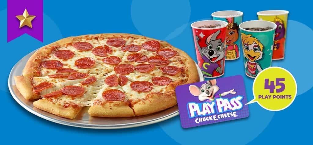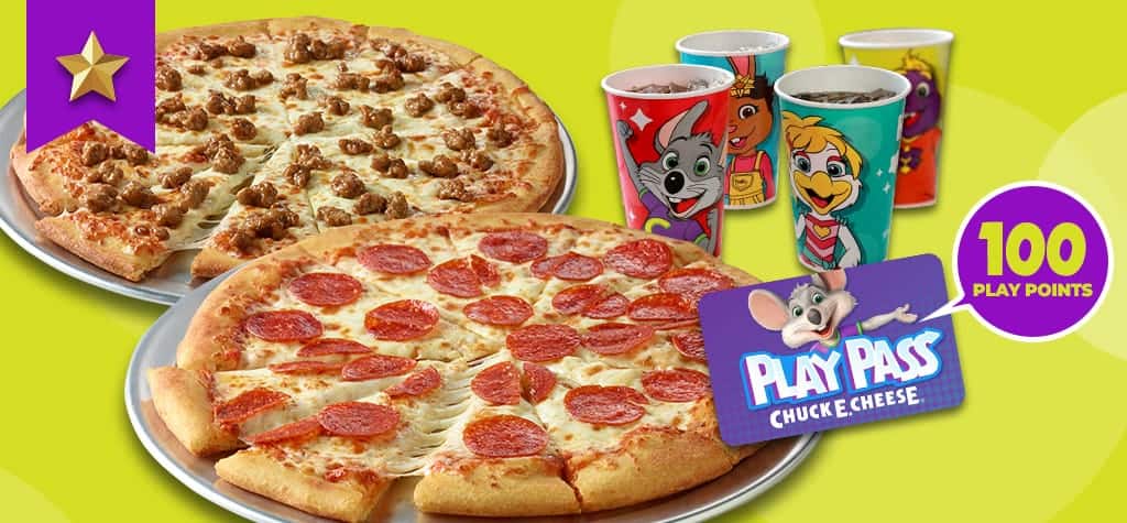 Chuck E. Cheese Everyday Value Deals bundle pizza and gameplay at participating locations. For ongoing savings, a Fun Pass membership includes 20-50% off food and drinks plus daily gameplay.