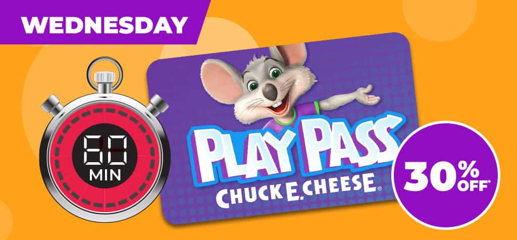 Chuck E. Cheese offers a 60-minute All You Can Play coupon for $19.99, valid Monday through Thursday at participating locations. Play Pass activation is not included.